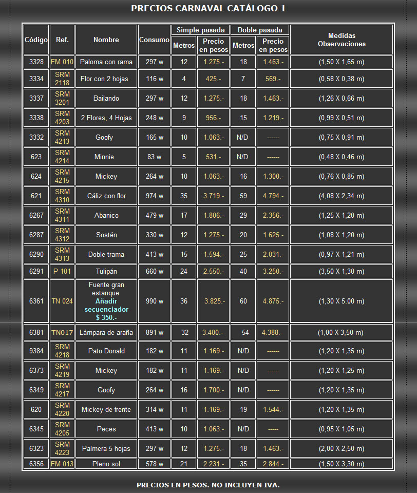 Los precios surgen de utilizar sobre los ornamentos PRECIOS CARNAVAL CATÁLOGO 1