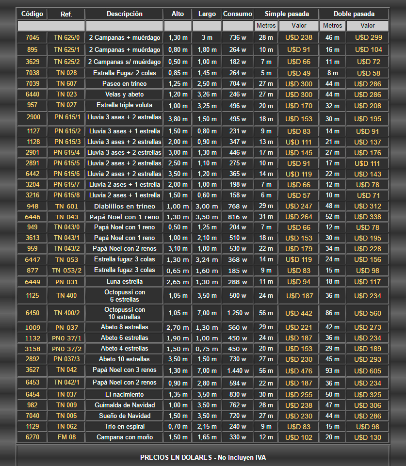en cuenta que los precios no incluyen flete, transporte ni seguro,