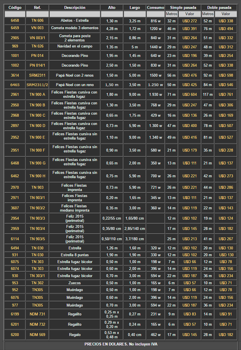 PRECIOS EN DOLARES. No incluyen IVA